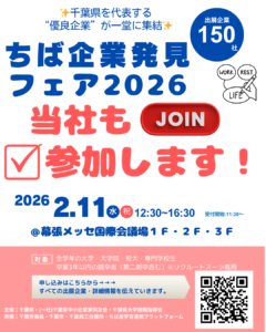 2月11日(水・祝)に開催される千葉県内の企業156社が集まる企業研究イベント「ちば企業発見フェア2026(in幕張メッセ)」に出展致します!